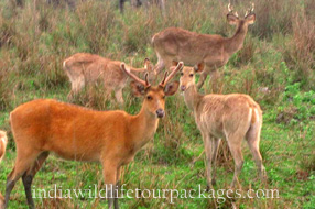 Bardia also boasts the greatest number of deer species in Nepal. The six deer species found in the park are: Chital or spotted Deer with its ubiquitous white spots on a brown coat; Hog Deer; similar to but smaller than Chital; Sambhar, the largest Deer on Indian subcontinent with a shaggy coat and thick antlers; Swamp Deer; Barasingha; and reddish-colored Barking Deer, the park’s smallest Deer.